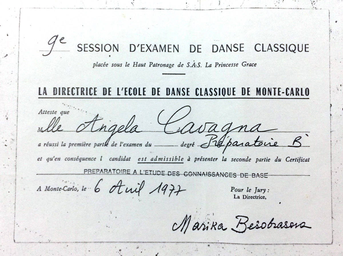 Dietro consiglio degli stessi insegnanti si reca all’estero fino a diplomarsi all’Accademia Nazionale Grace Kelly di Montecarlo.